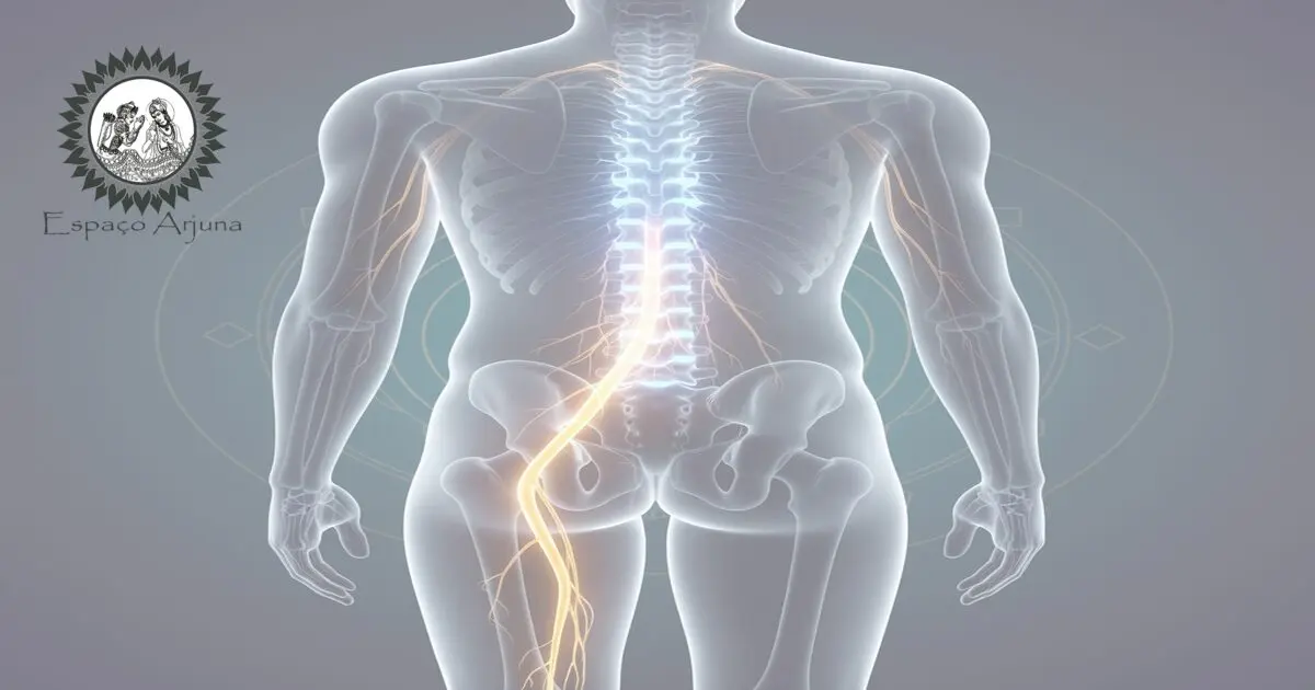 No enquadramento ayurvédico, a lombalgia com irradiação é frequentemente interpretada como manifestação de vāta vitiado que afeta os dhātus responsáveis pela sustentação e movimento. Asthi dhātu e māṃsa dhātu são categorias conceituais importantes nesse raciocínio: asthi representa o componente estrutural — ossos, disco incluído no sentido de tecido de suporte — enquanto māṃsa refere-se aos músculos, tendões e estruturas moles que circundam a coluna.