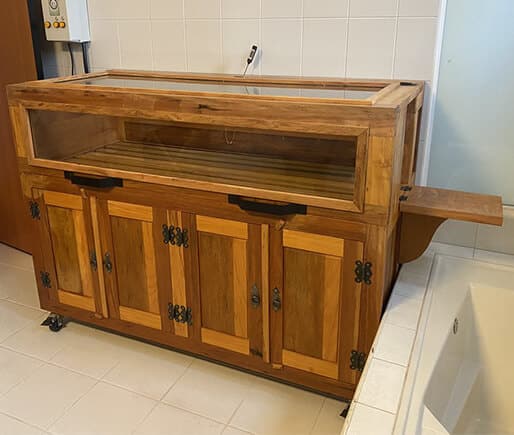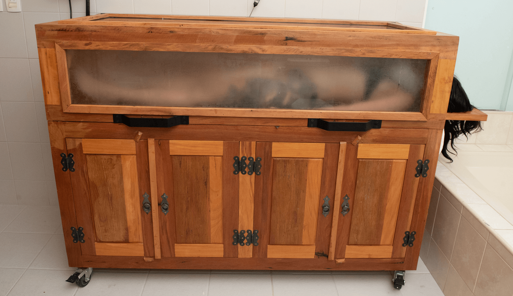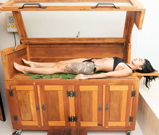 Essa sauna ayurvédica é maravilhosa, ela abre pelos dois lados e a panela do sistema de automação (que é vendido em separado) pode ser colocado dentro dela!!