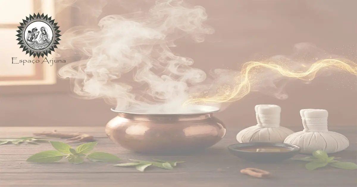 Svedana — स्वेदन é uma prática terapêutica clássica do Ayurveda que usa calor e sudação para mobilizar e eliminar resíduos, aliviar obstruções e preparar o corpo para terapias subsequentes. Embora a imagem mais imediata seja a de vapor, compressas e banhos quentes, svedana é um conceito amplo que cobre métodos variados — locais, regionais e gerais — e que se articula com princípios fisiológicos e terapêuticos próprios do sistema ayurvédico. Este artigo oferece uma discussão conceitual de svedana: seus objetivos, fundamentos clássicos, relação com snehana — स्नेहन, sua ação sobre os canais conhecidos como srotas — स्रोतस्, os efeitos esperados nos doṣa — दोष, e as convergências e limitações frente às noções modernas de calor terapêutico. O texto tem caráter informativo e convida à investigação crítica e prática responsável, além de apontar leituras e recursos confiáveis.